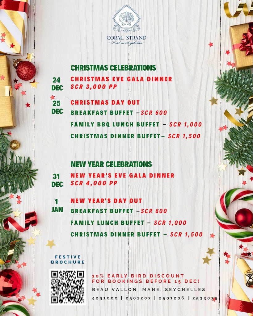 What’s On Mahé? Christmas Eve Gala Dinner 📍Coral Strand, Beau Vallon💰 scr3000 per person