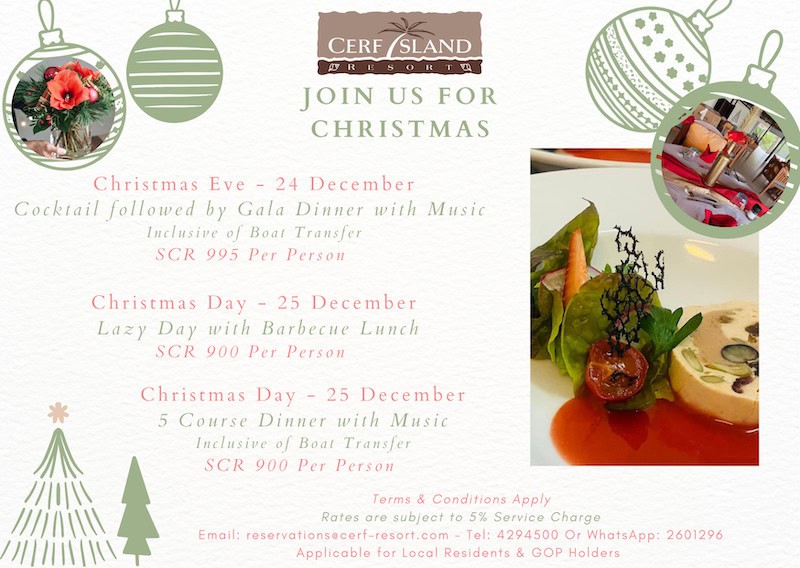 What’s On Mahé? Christmas Day Lunch & Dinner 📍Cerf Island Resort💰 from scr900