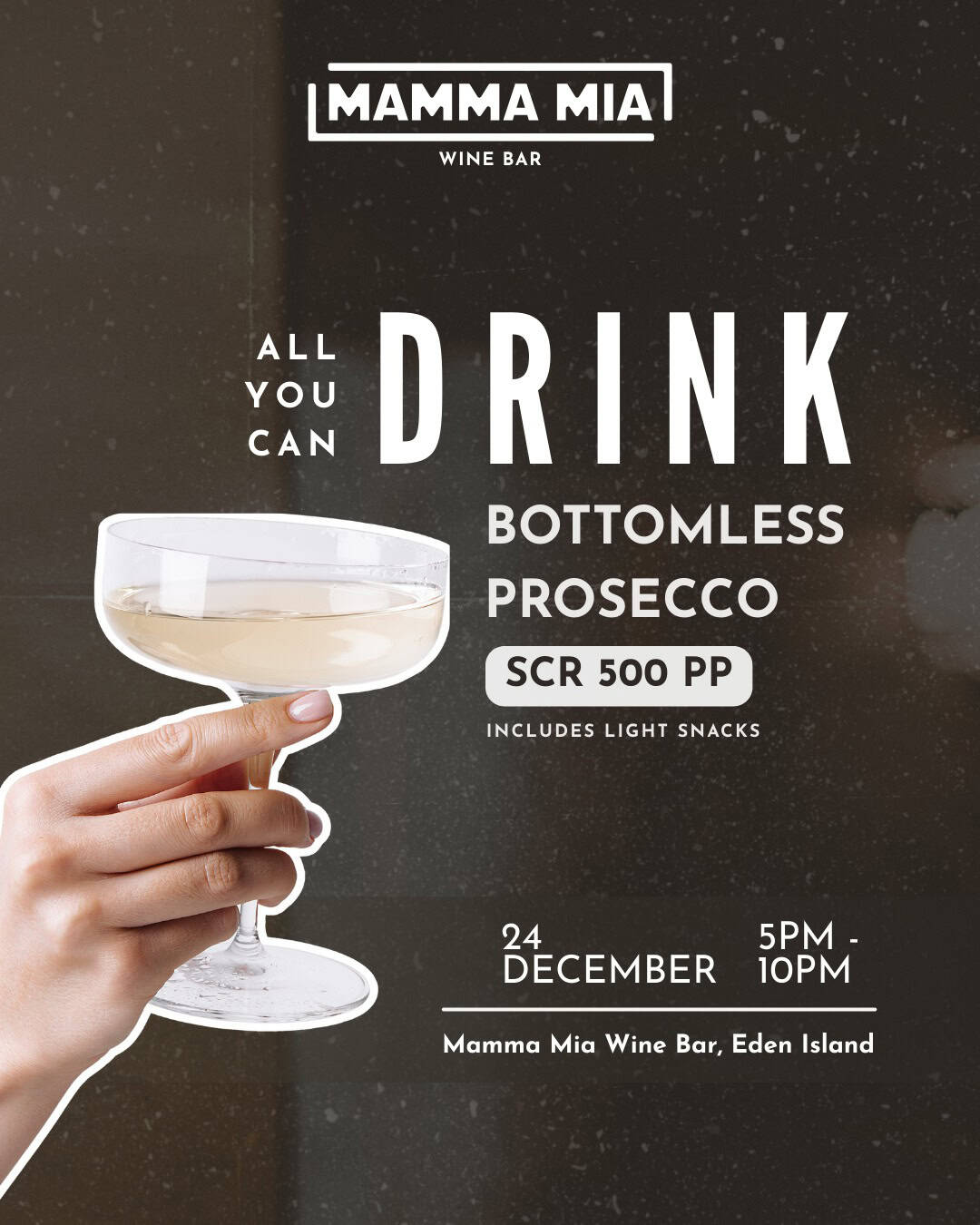 What’s On Mahé? Christmas Eve Bottomless Prosecco 📍Mamma Mia, Eden Island💰 scr500