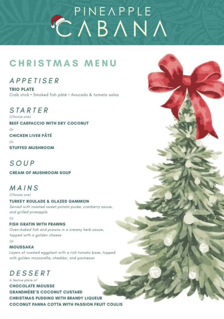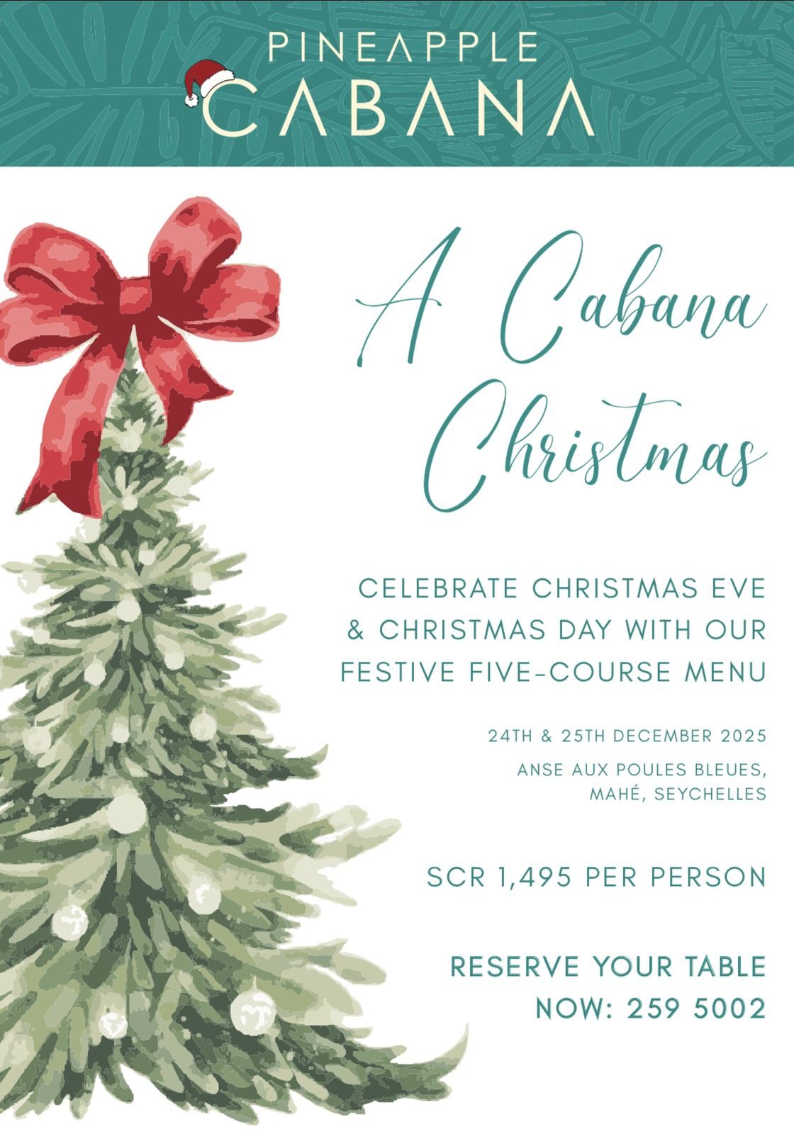 What’s On Mahé? Christmas Day Five Course Menu 📍Pineapple Cabana, Anse Aux Poules Bleues💰 scr1495 per person