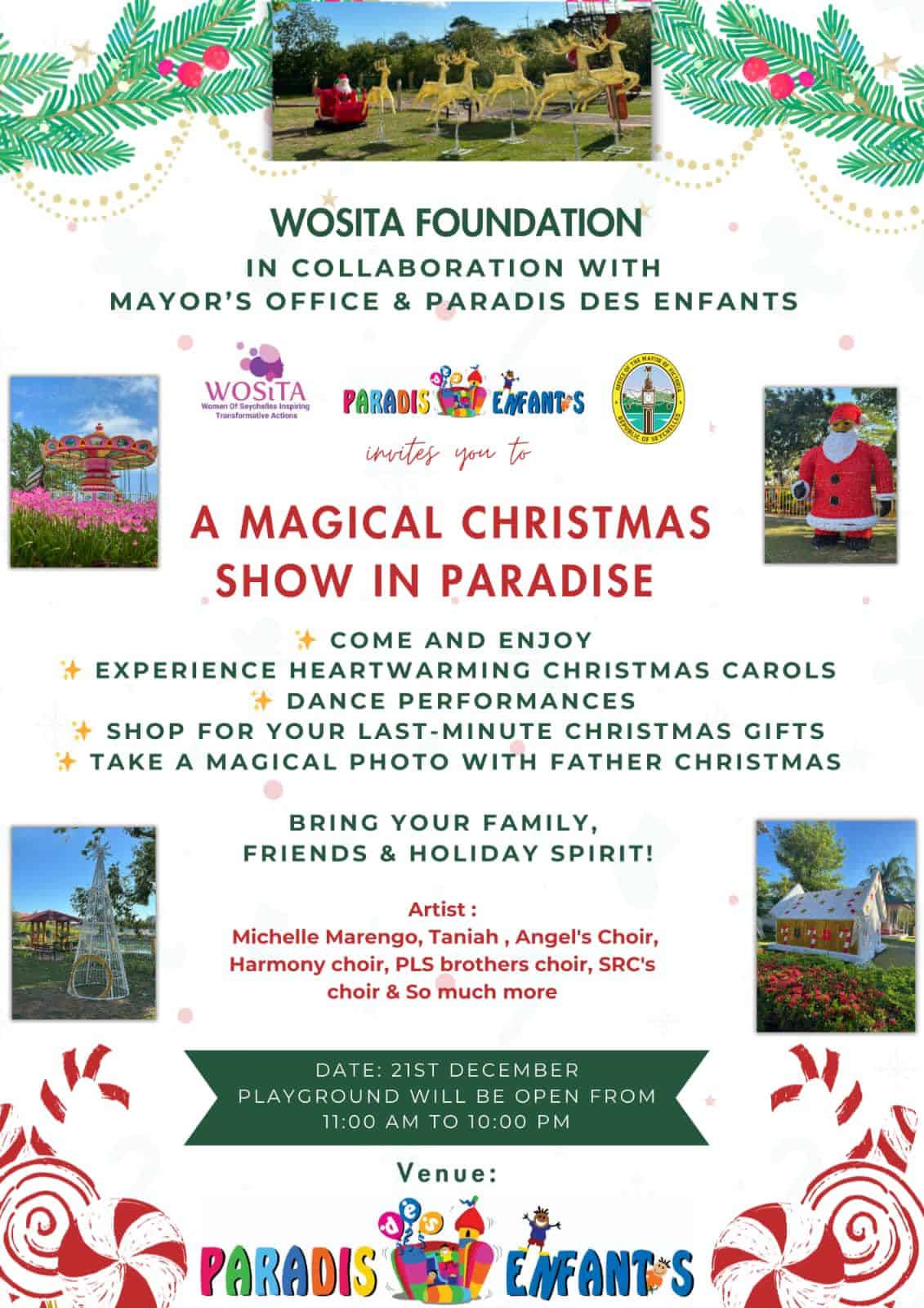 What’s On Mahé? Christmas Show  🕗 11AM till 10PM📍Paradis Des Enfants Playground, Victoria💰 Free Entry