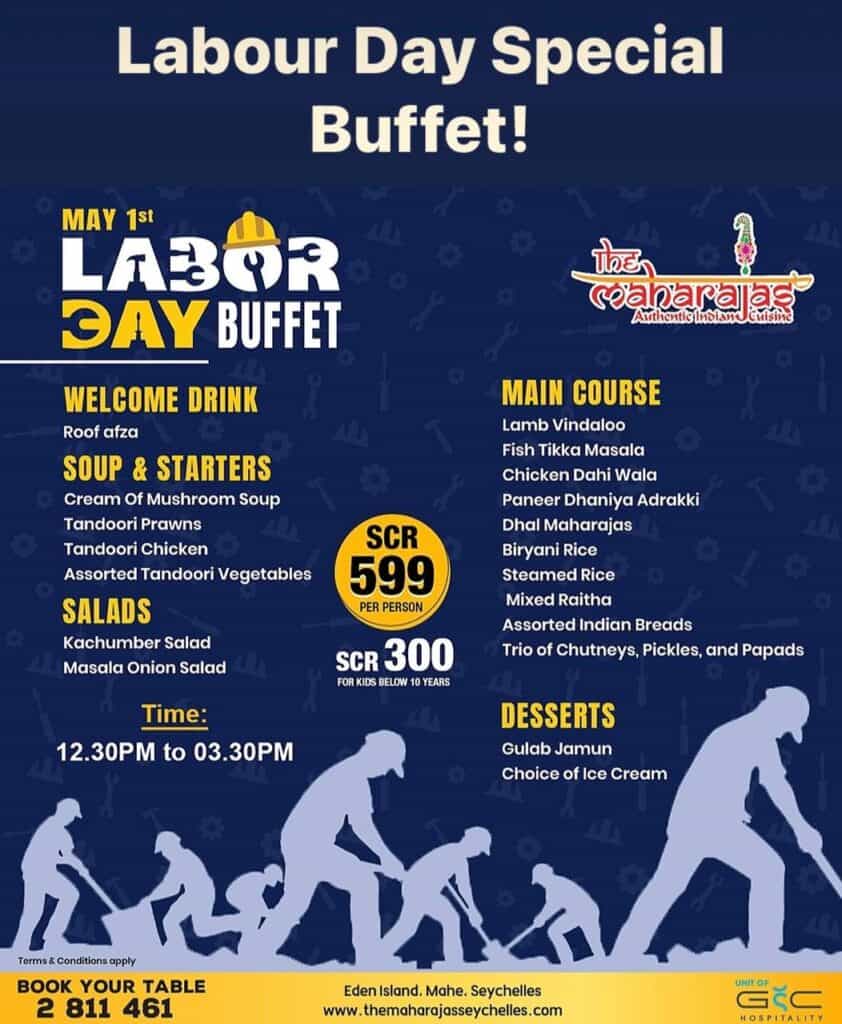 What’s On Mahé? Labour Day Special Buffet📍The Maharajas at Eden SCR599/- per person