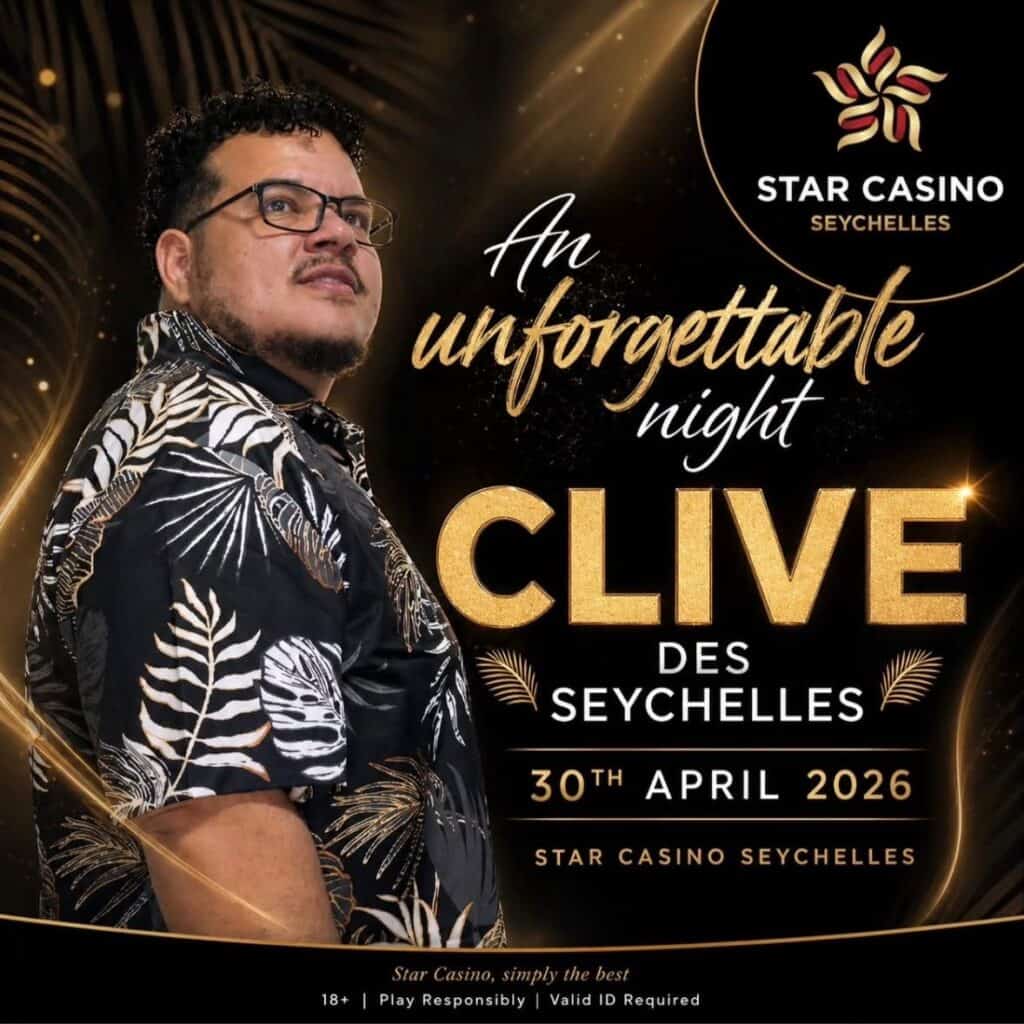 What’s On Mahé? Clive Live 🕗 till late📍Star Casino – Eden Island Entry Free 🔞