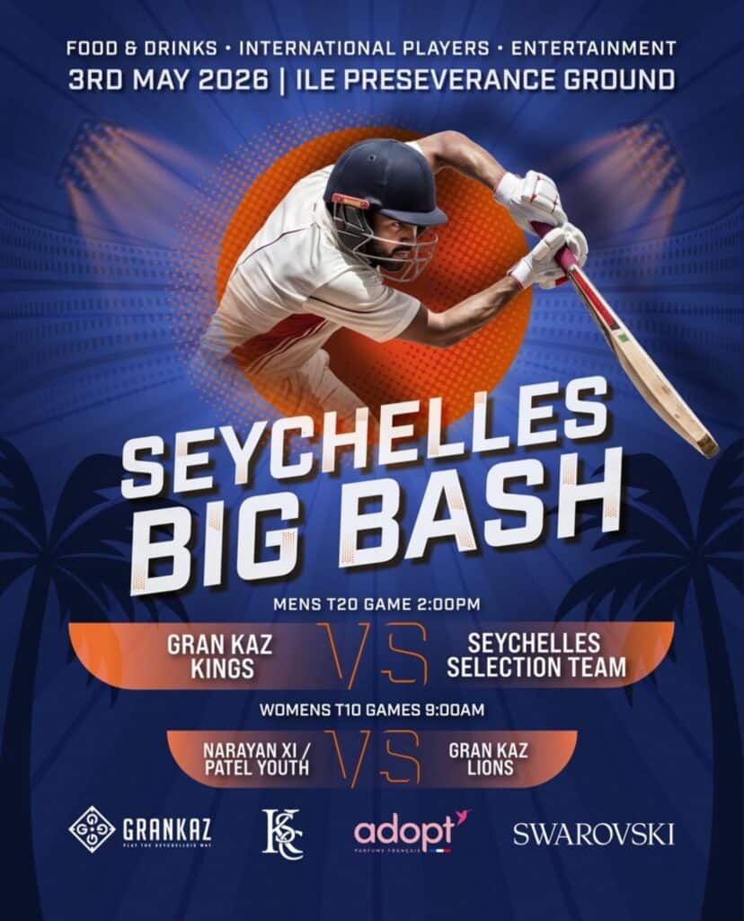 What’s On Mahé? Seychelles Big Bash🕗 9 am & 2 PM 📍Ile Perseverance Ground