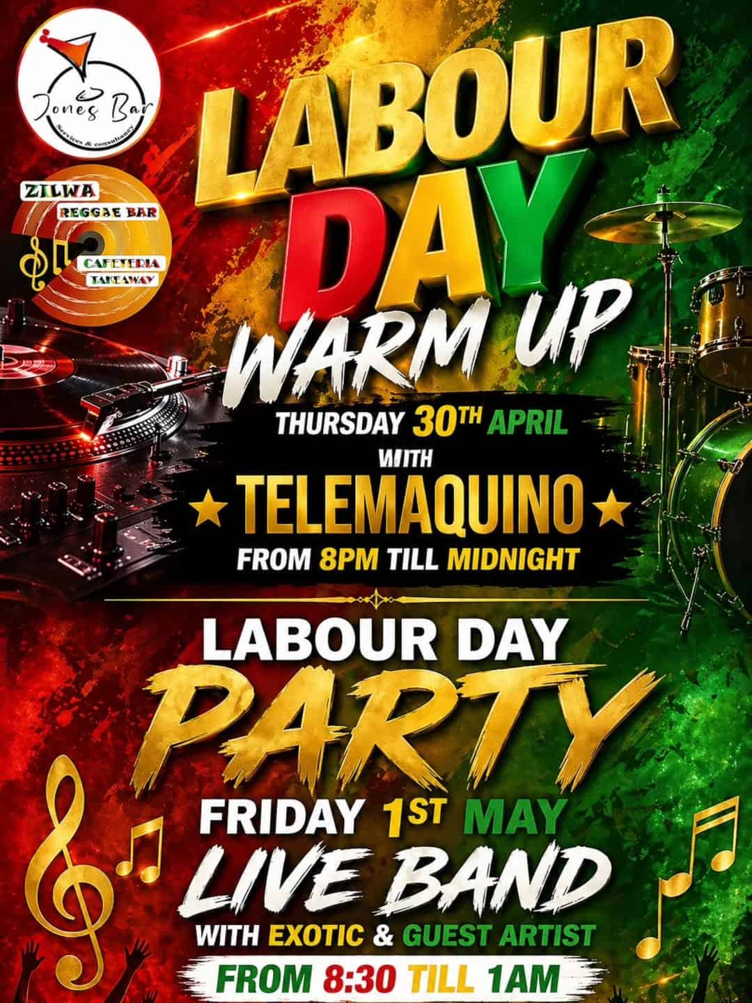 What’s On Praslin? Labour Day Warm Up 🕗 8:00PM-late📍Zilwa Reggae Bar – Praslin Free entry🔞