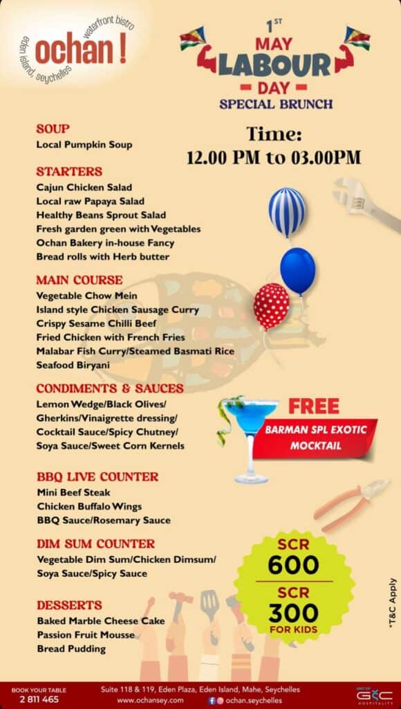 What’s On Mahé? Labour Day Special Buffet📍Ochan! at Eden SCR600/- per person