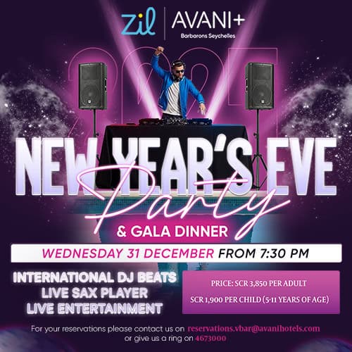 What’s On Mahé? New Year’s Eve Party & Gala Dinner 🕗 7:30PM onwards📍Avani+ Barbarons 💰from scr3850