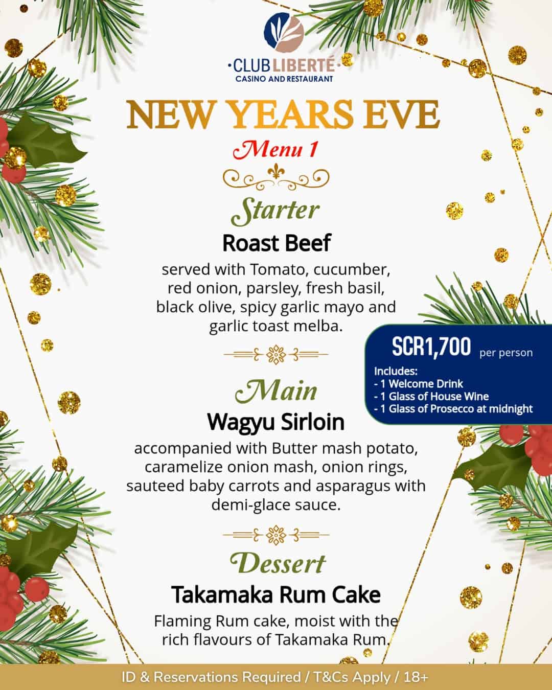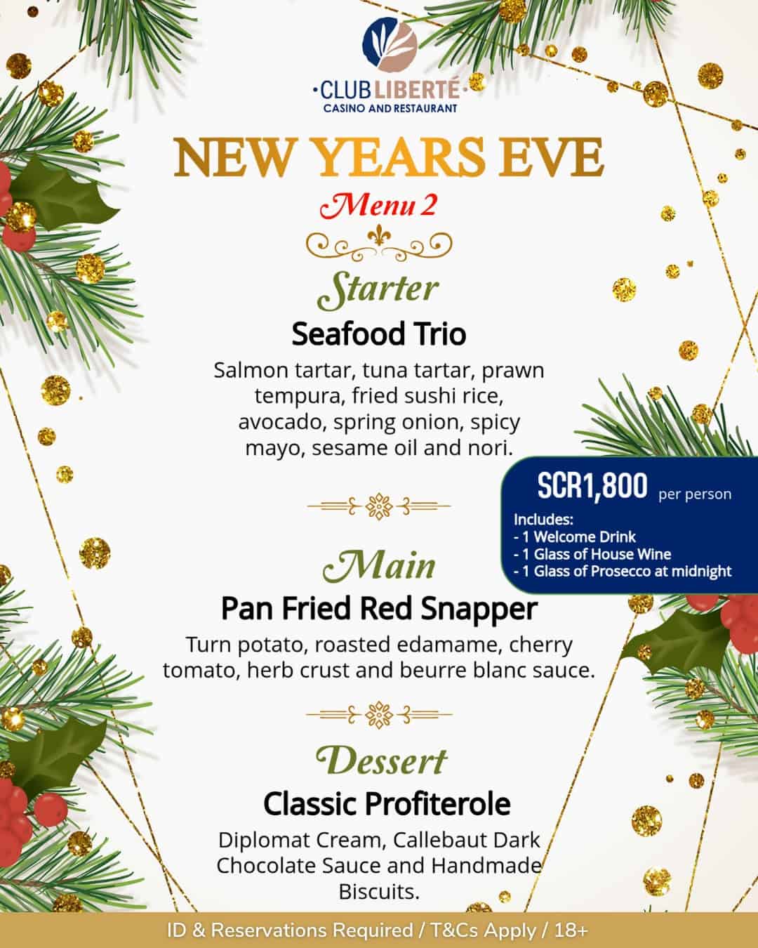What’s On Mahé? New Year’s Eve Set Menu Dinner 9 PM – 12 AM