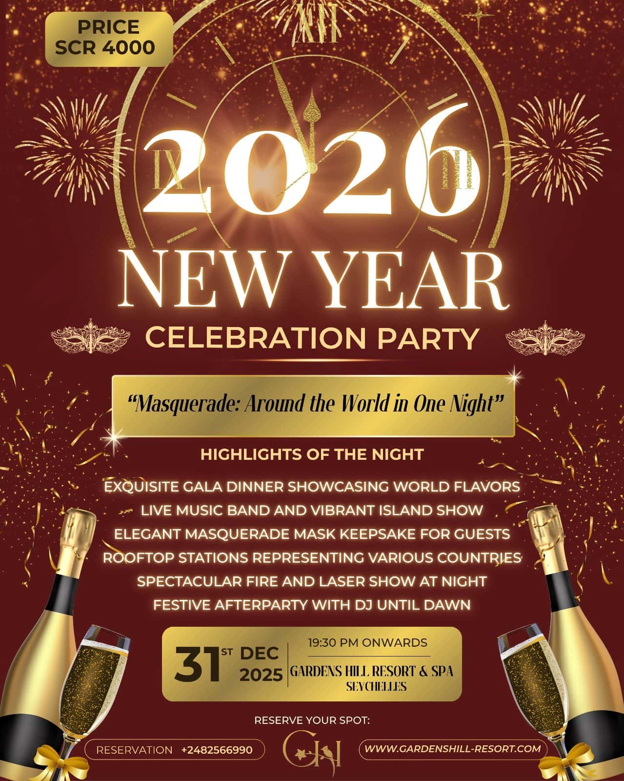 What’s On Mahé? 2026 New Year’s Eve Celebration Party 7:30 PM onwards