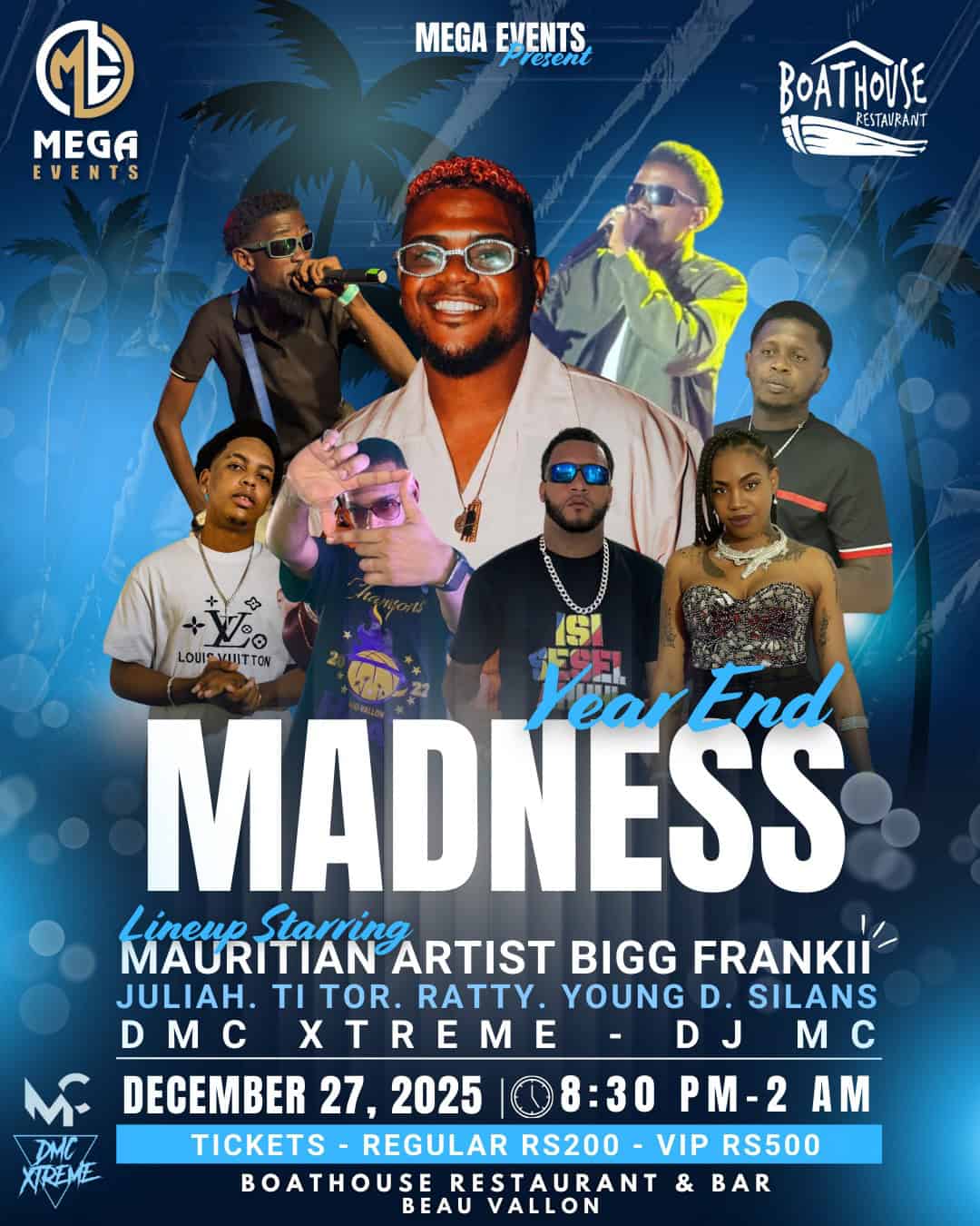 What’s On Mahé? Year End Madness! 🕗 8:30PM – 2AM📍Boathouse Restaurant & bar 💰from scr200