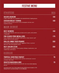 What’s On Mahé? Festive Menu ! 🕗 till 4th January 2026📍 Gran Kaz 💰from scr100