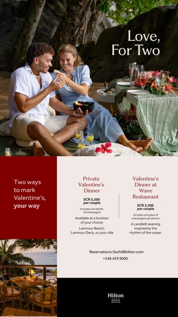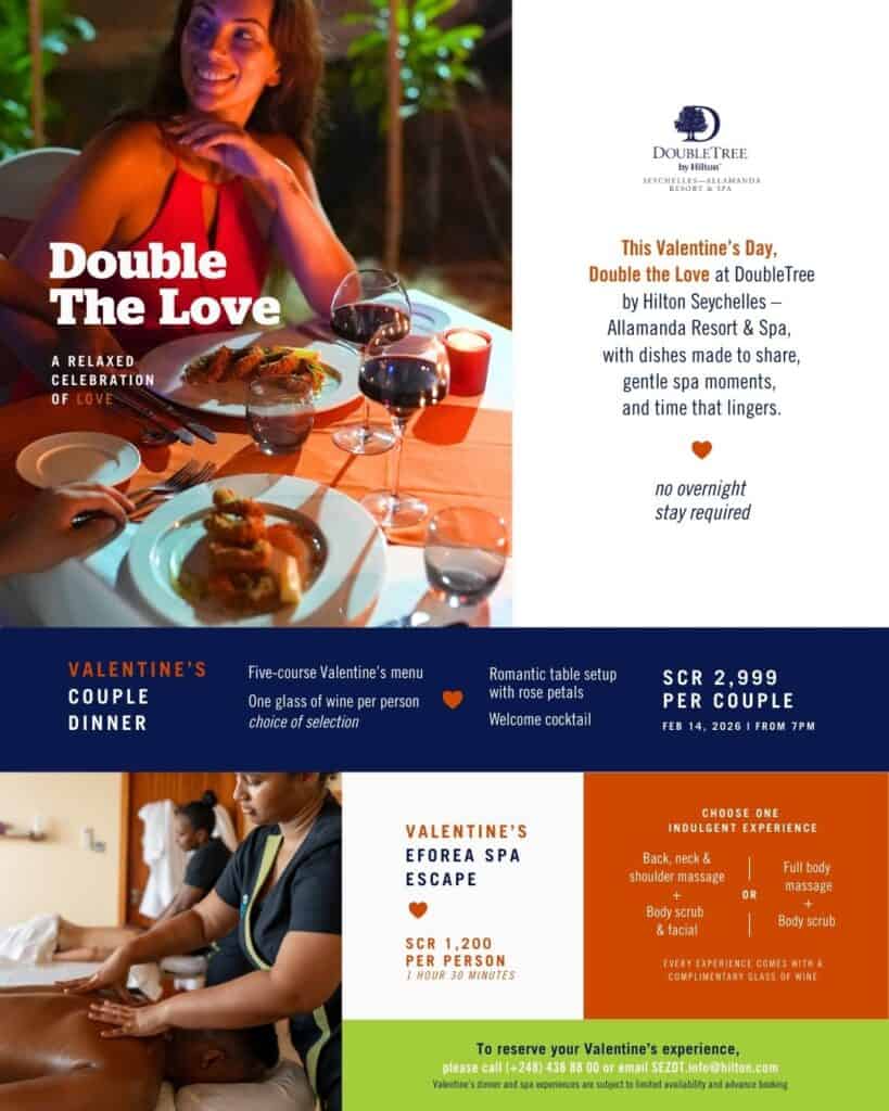 What’s On Mahé? Double the love 🕗 from 7PM📍Hilton Double Tree, Allamanda Resort💰from scr2,999 per couple