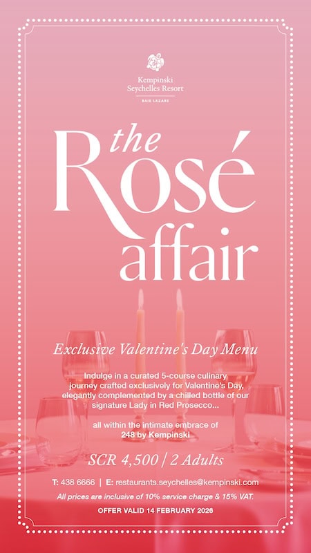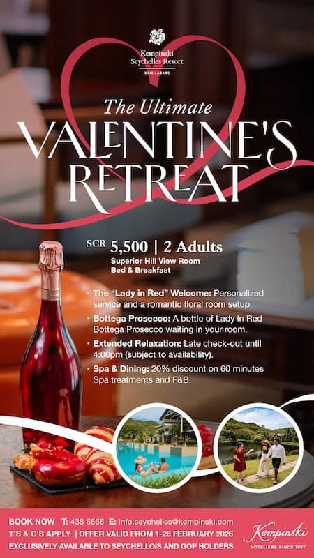 What’s On Mahé?🕗 Valentine’s Retreat 📍Kempinski Seychelles Resort💰scr 5500 per couple