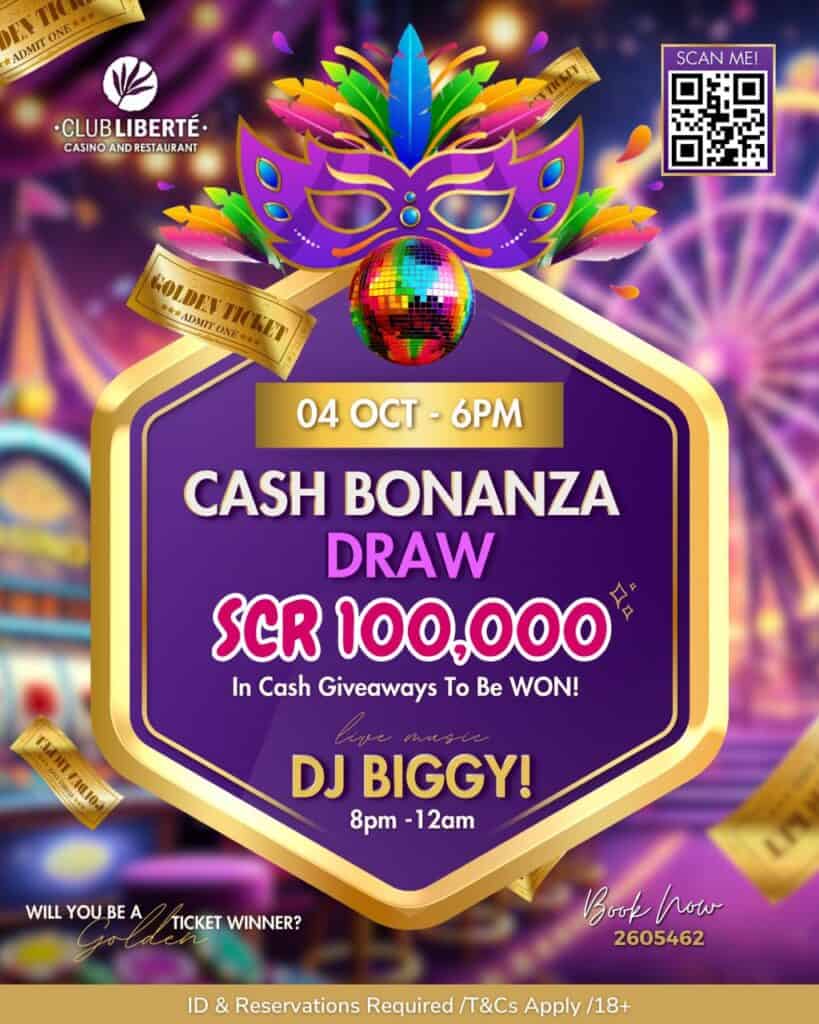 What’s On Mahé? Cash Bonanza and DJ Biggy 🕗 8 PM – 12 AM📍Club Liberté in the south – Baie Lazare💰Call to book now🔞