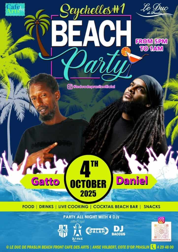 What’s On Praslin? ULTIMATE BEACH PARTY!!🕗 7 PM onwards📍Le Duc De Praslin Hotel -Tapas Lounge Bar – Praslin 💰Free Entry!🔞