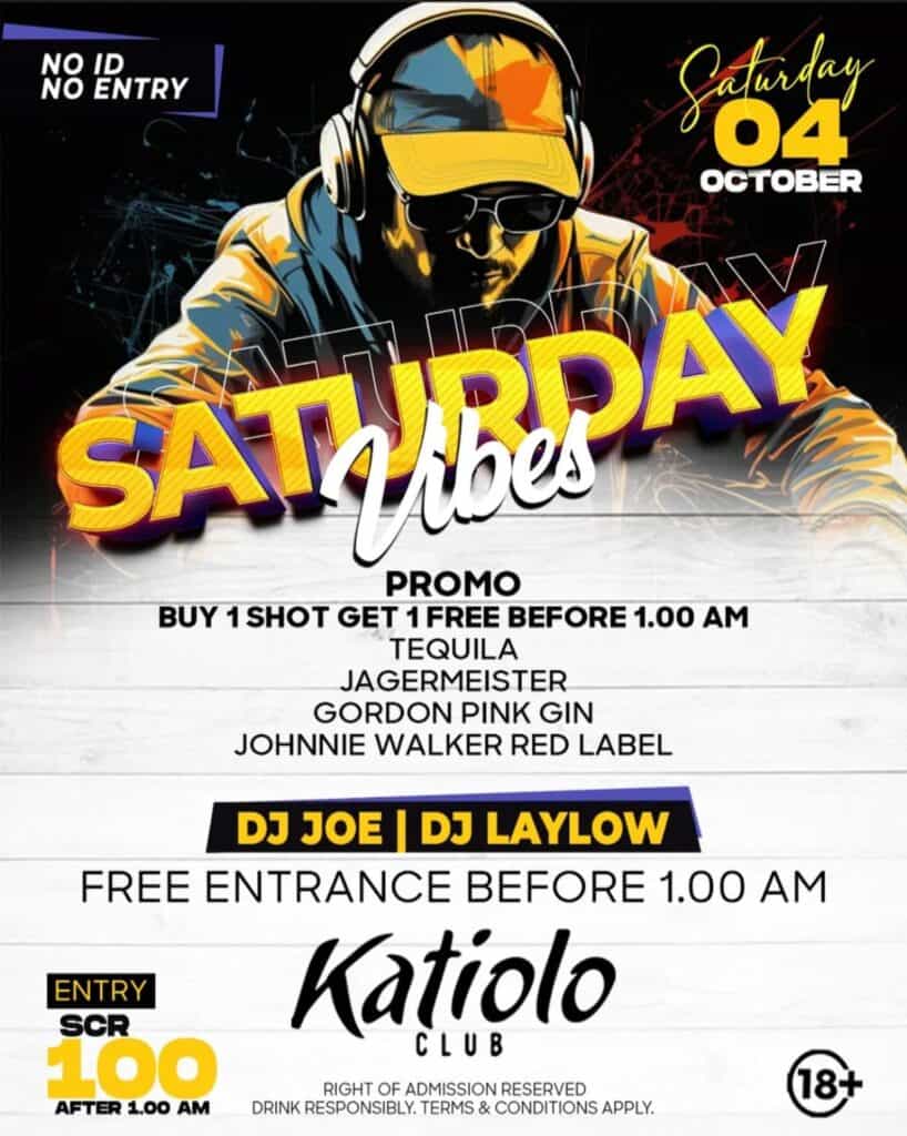 What’s On Mahé? Sat Vibes!🕗 LATE TILL LATE📍Katiolo Nightclub in Au Cap, Mahé💰 SCR100/- Normal Tickets🔞