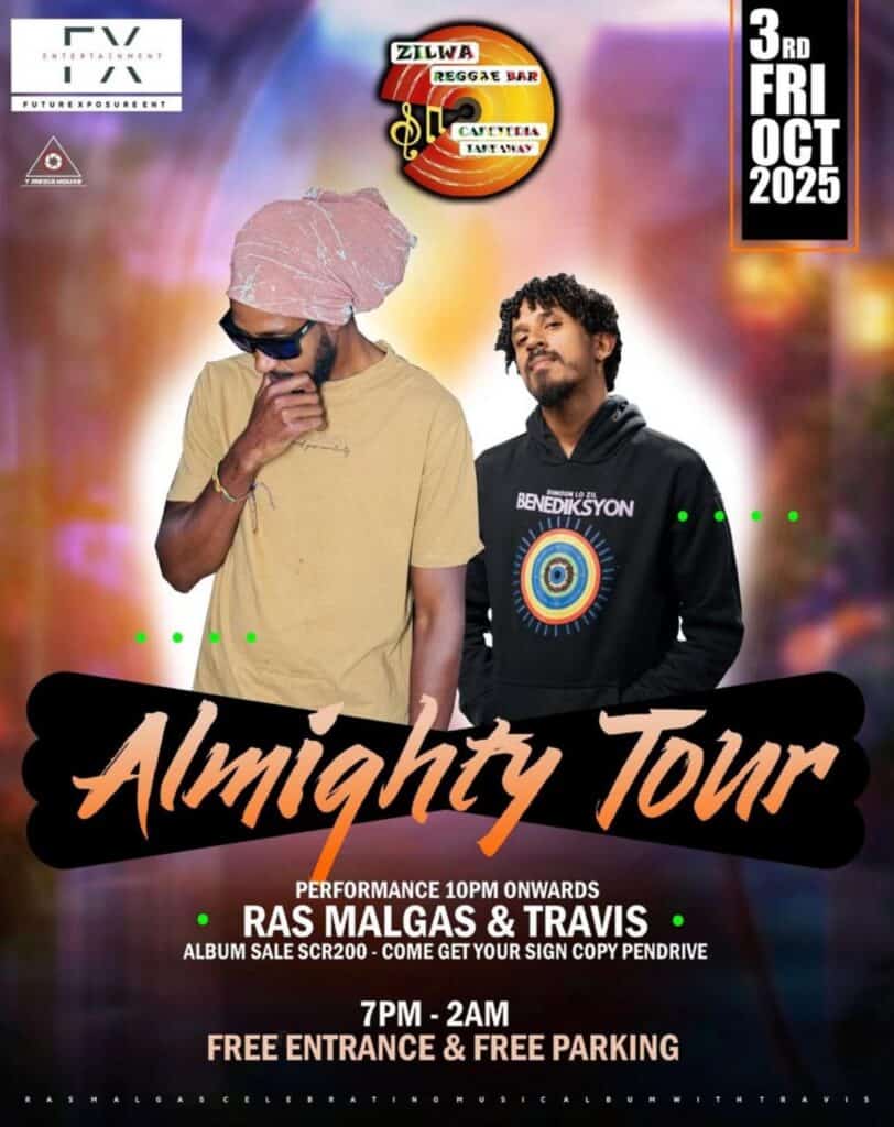 What’s On Praslin? Almighty Tour🕗 7 PM – 2 AM📍Zilwa-Reggae Bar – Grand Anse Praslin 💰Free Entry!🔞