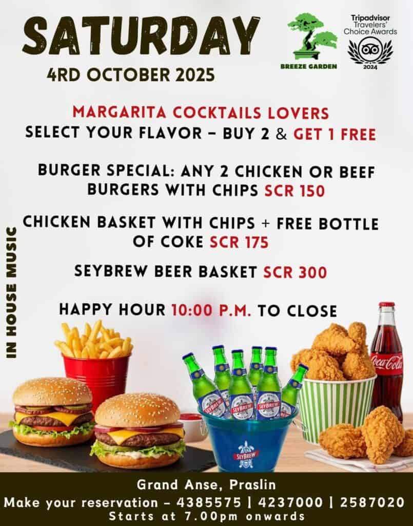 What’s On Praslin? Breeze Saturday🕗 7 PM onwards📍Breeze Garden – Grand Anse Praslin 💰Free Entry!