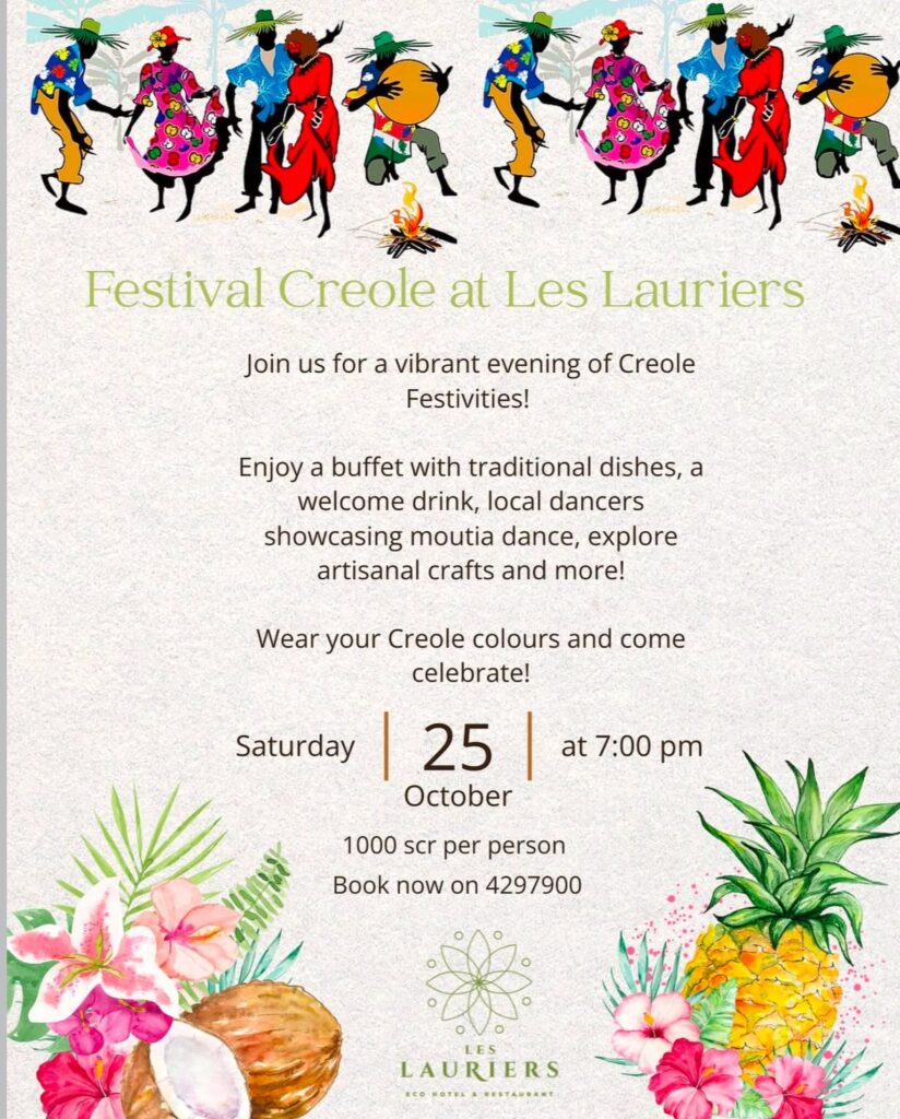 What’s On Praslin? Fest Creol🕗 7 PM onwards📍Les Lauriers Eco Hotel Praslin 💰SCR1000/- per person