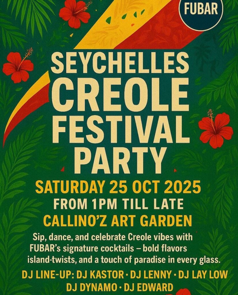 What’s On Mahé? Creole Fest Party📍Callinoz – Art Garden – Fubar – Victoria💰 Free Entrance🔞