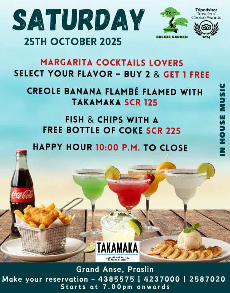 What’s On Praslin? Breeze Saturday🕗 7 PM onwards📍Breeze Garden – Grand Anse Praslin 💰Free Entry!