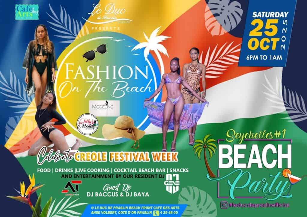 What’s On Praslin? Fashion on the beach🕗 6 PM – 1 AM📍Le Duc de Praslin – Coté D’or Beach💰Free Entry!