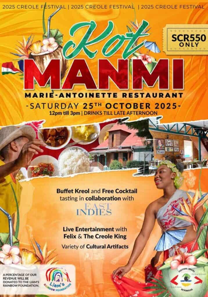 What’s On Mahé? Kot Manmi 🕗12 PM – 3 PM 📍Marie Antoinette Restaurant 💰SCR 550/-