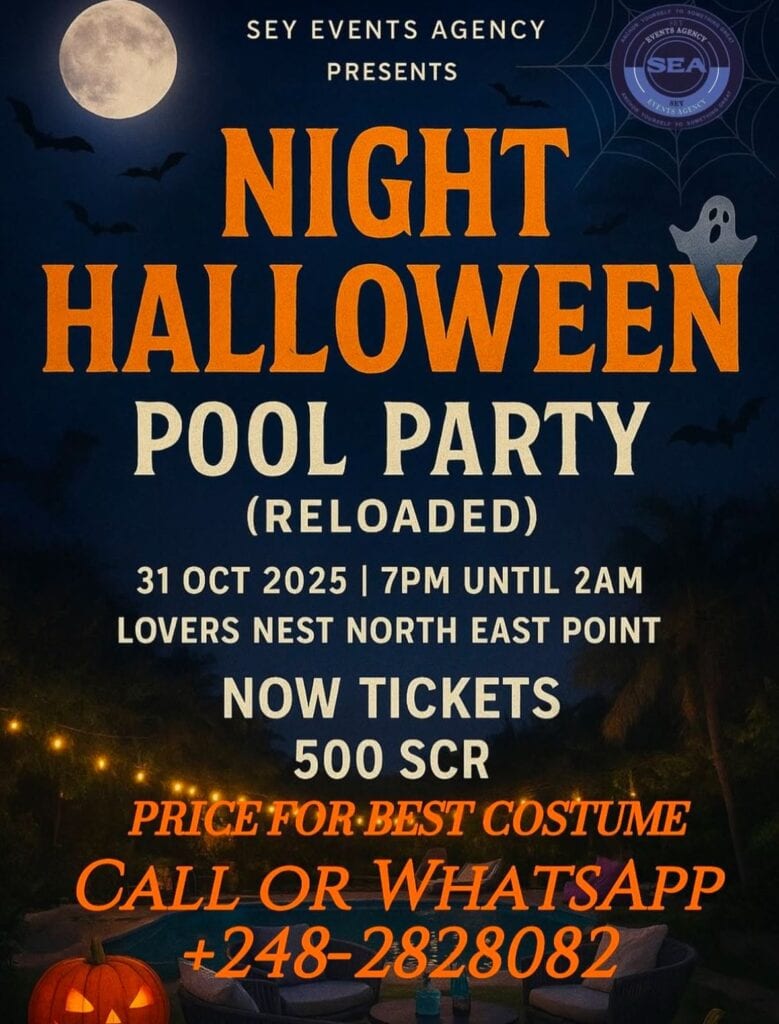 What’s On Mahé? Halloween Pool Party 🕗 6 PM till late📍Lovers Nest at North East Point – Mahé💰 SCR 500/-🔞