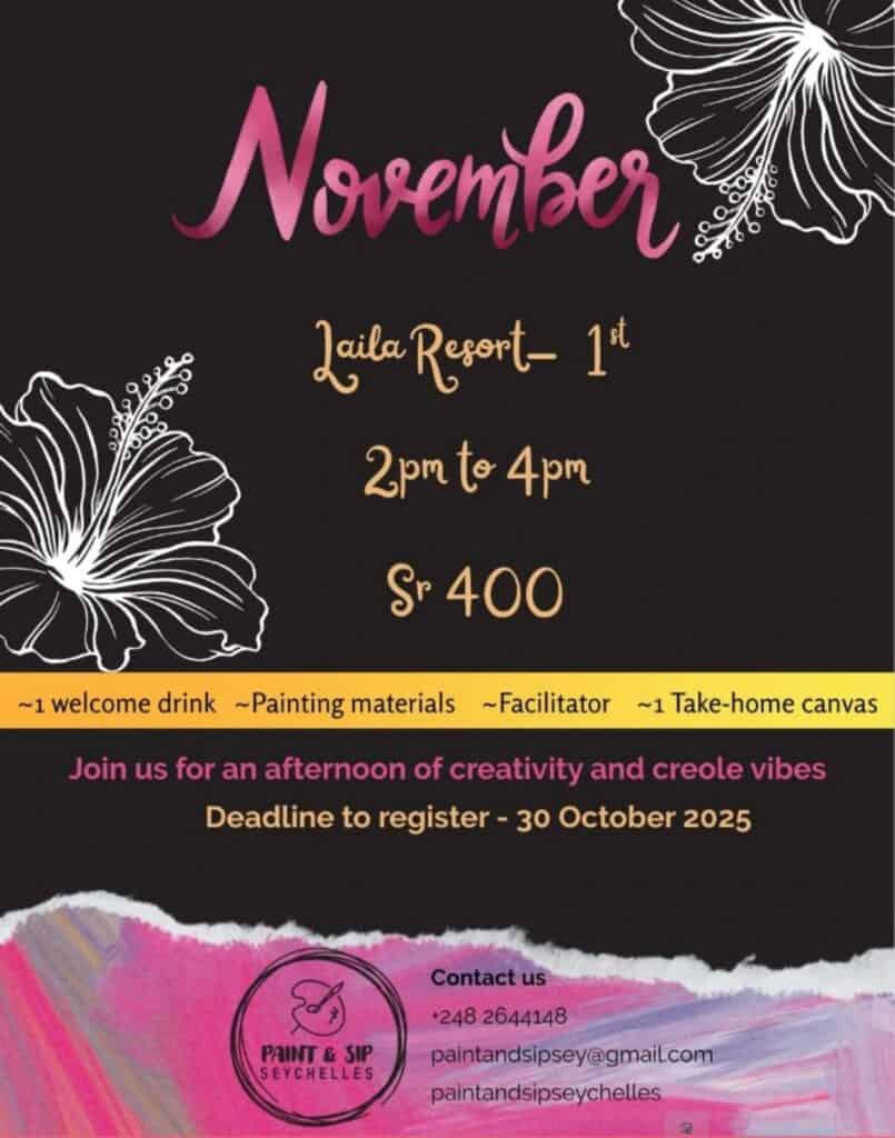 What’s On Mahé? Paint and Sip 2 PM – 4 PM