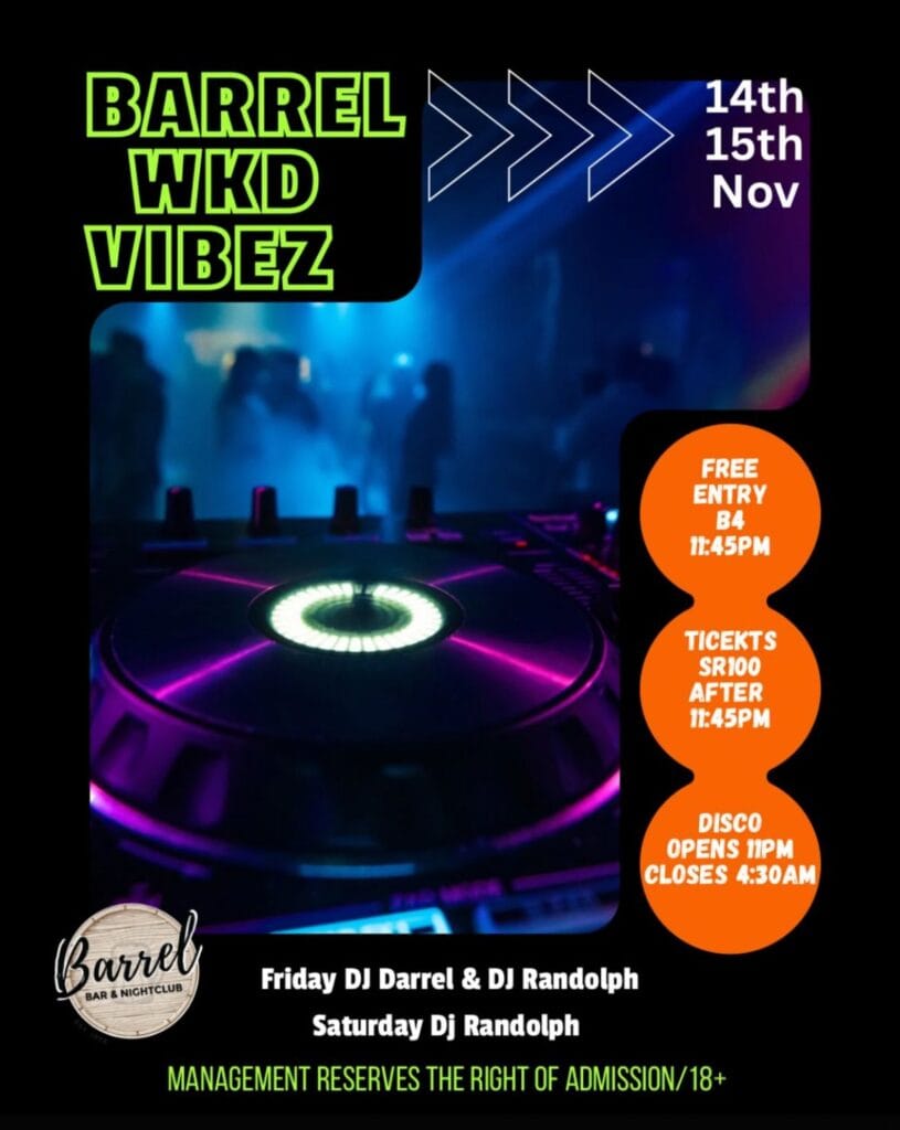What’s On Mahé? Barrel WEEKEND Vibes 🕗 14th & 15th November Open at 11 PM 📍Barrel Nightclub in Victoria – Mahé💰 Free b4 11:45 PM / SCR100/- after
