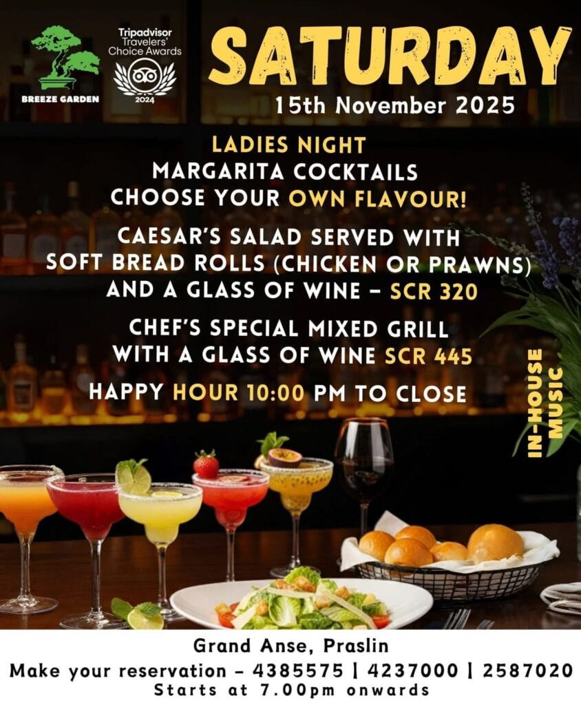 What’s On Praslin? Breeze Saturday🕗 7 PM onwards📍Breeze Garden – Grand Anse Praslin 💰Free Entry!