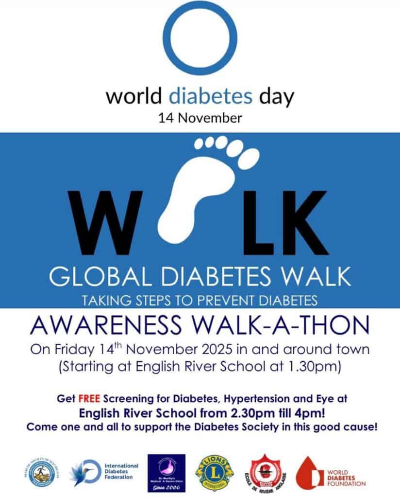 What’s On Mahé? Walk Global Diabetes Day 🕗 1:30 PM 📍English River school – Mahé💰 Free for all