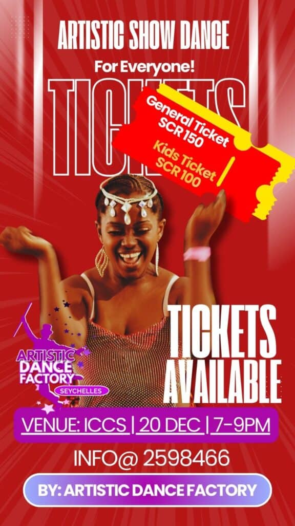 On Mahé? Artistic Show Dance 🕗 7 PM – 9PM📍ICCS – Victoria, Mahé💰 scr150 adults /scr100 kids