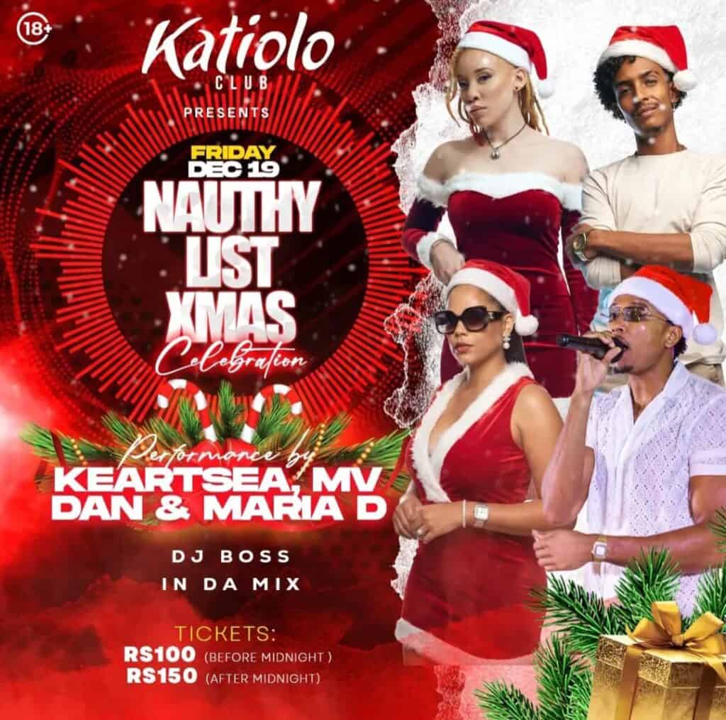 What’s On Mahé? Nauthy List Xmas Celebration 🕗 from 9PM 📍Katiolo 💰 from scr1oo