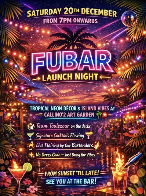 On Mahé? Fubar Launch Night 🕗 7 PM till late📍Callinoz Art Garden – Victoria, Mahé💰 free entry🔞