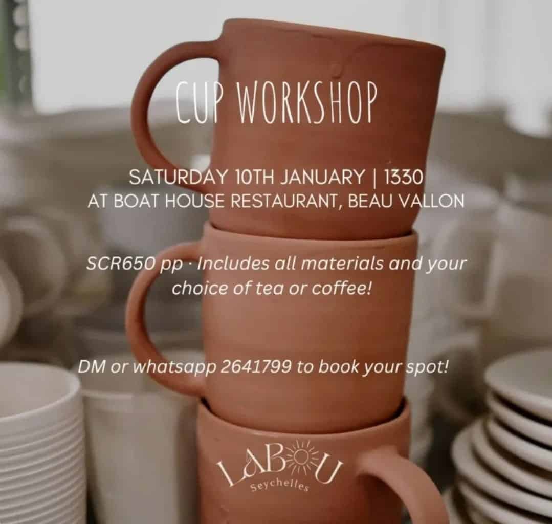 What’s On Mahé? Cup Workshop 🕗 1:30PM till 3:30PM📍Boathouse Restaurant – Beau Vallon💰 scr 650