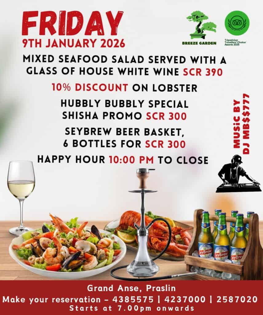 What’s On Praslin? Friday Specials 🕗 from 7pm 📍Breeze Garden💰 scr 390