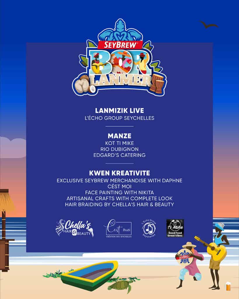 What’s On Mahé? Seybrew Bor Lanmer 🕗 11AM–11PM 📍Beau Vallon Beach 💰free entry