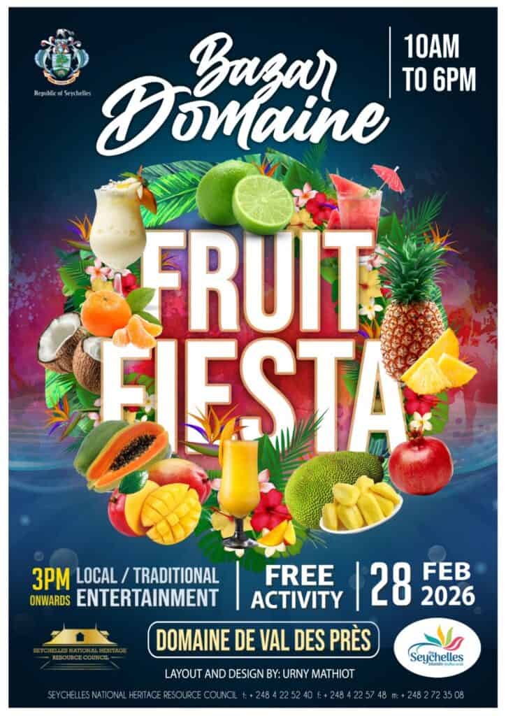 What’s On Mahé? Fruit Fiesta 🕗10AM-6PM📍Domaine de Val des Près, Au Cap 💰 Free Entry