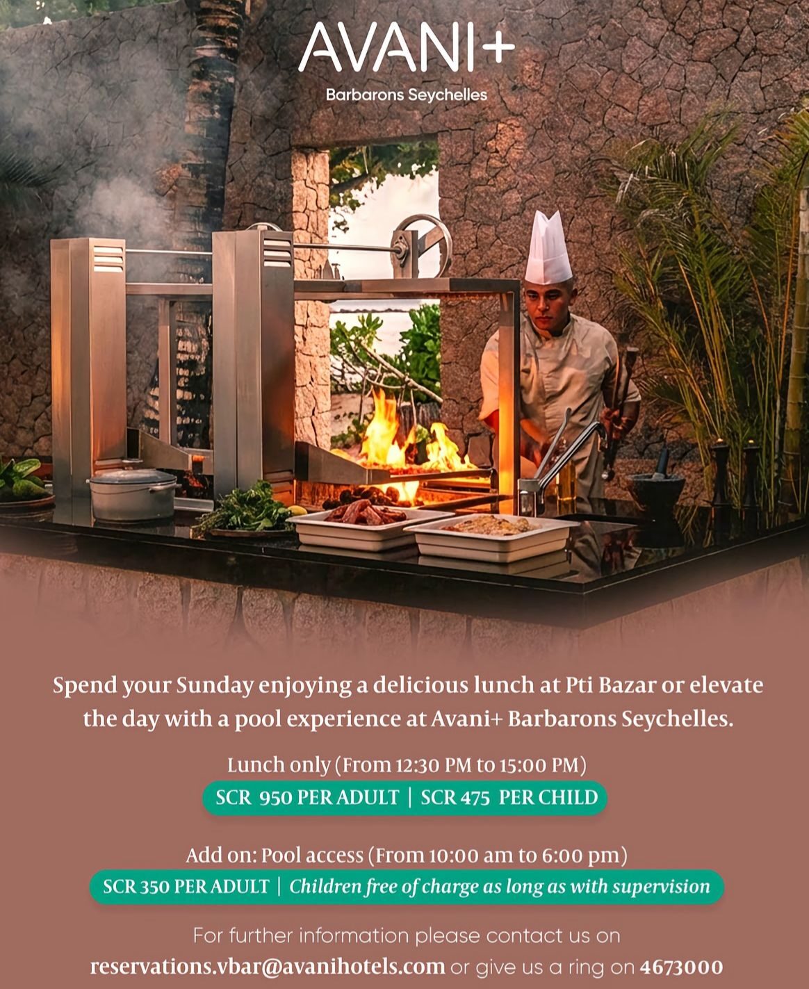 What’s On Mahé? BBQ lunch 🕗 from 12:30PM📍Avani+ Barbarons💰scr950