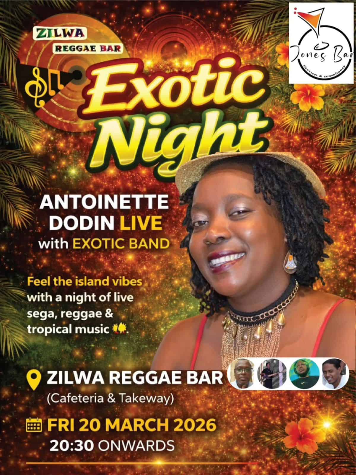 What’s On Praslin? Antoinette Live – Exotic Nights🕗 20:30PM-late📍Zilwa Reggae Bar- Praslin Free entry🔞