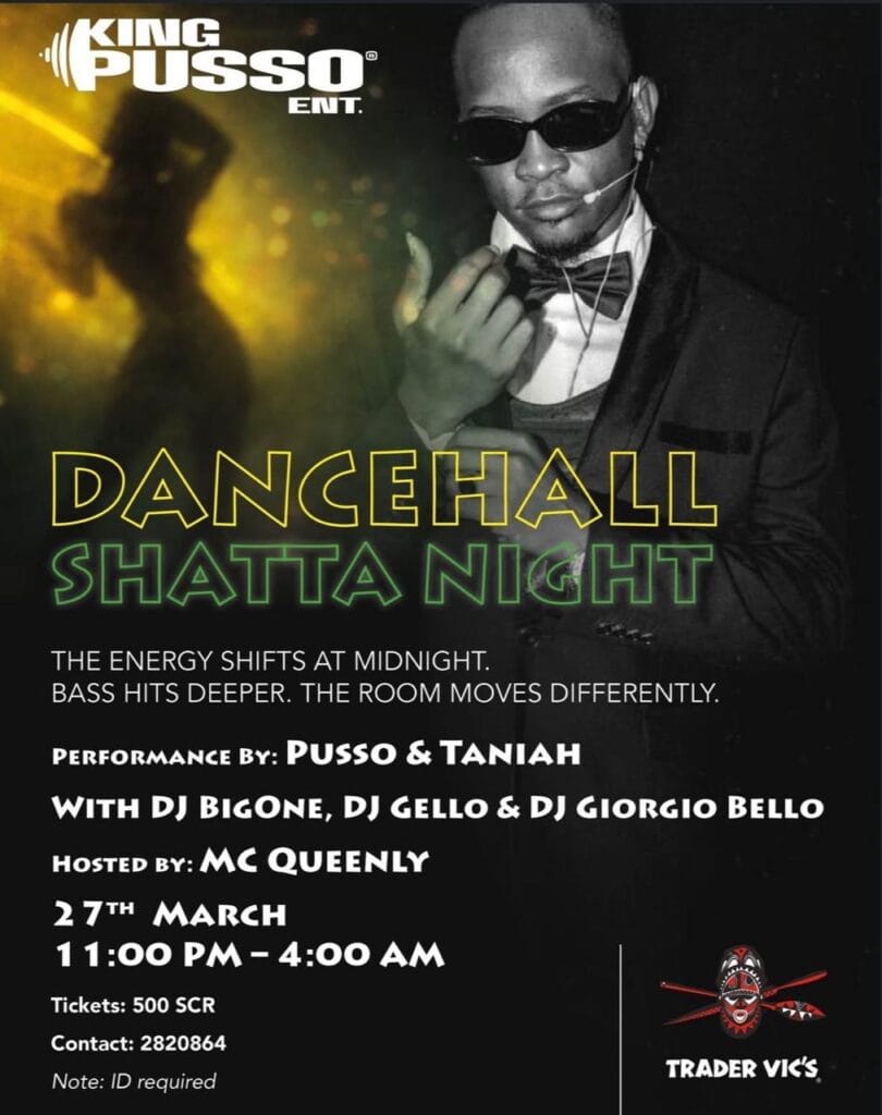 What’s On Mahé? Shatta Night🕗 11PM – 4AM📍Trader Vic’s💰SCR500/- 🔞