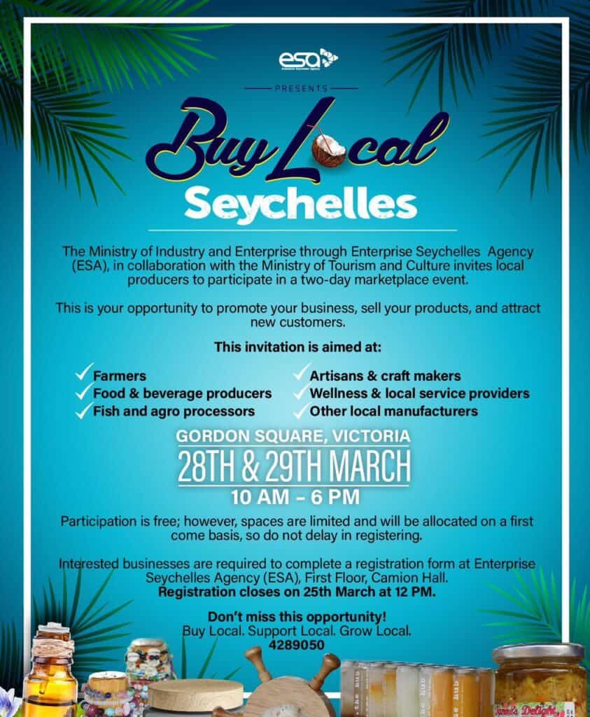 What’s On Mahé? Buy Local Seychelles🕗 10 AM – 6 PM 📍Gorden Square in Victoria Free Entrance