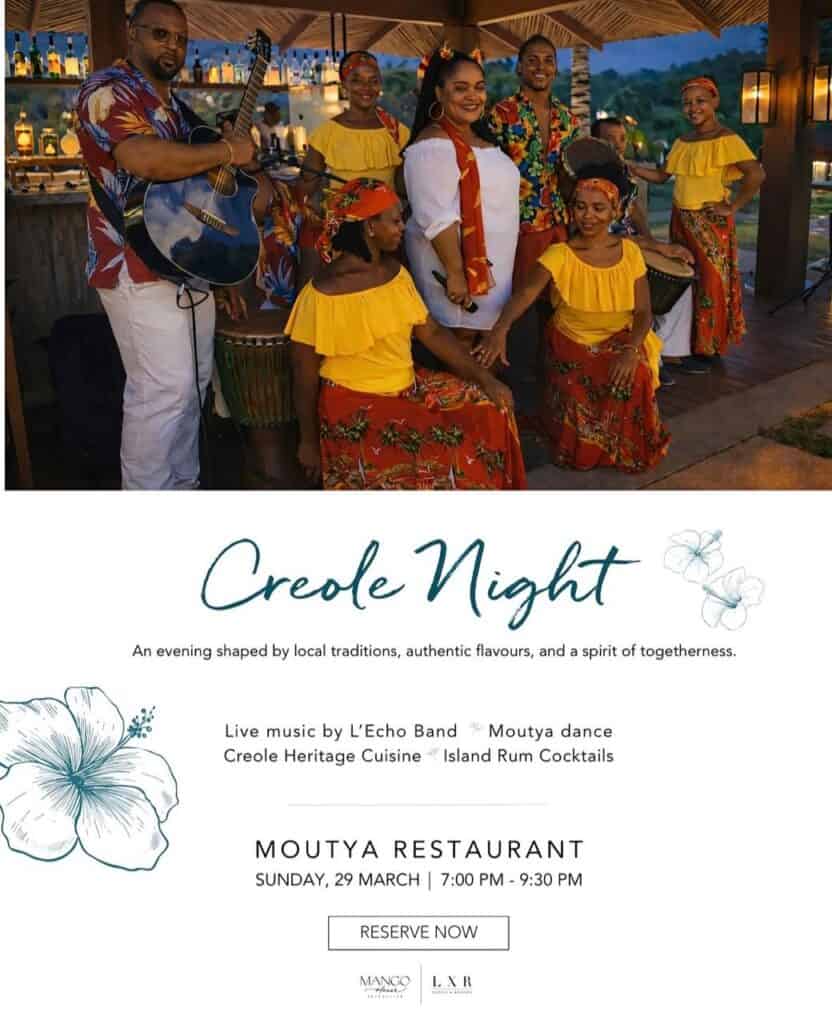 What’s On Mahé? Creole Night 🕗 from 6.30PM📍Double Tree Hilton, South Coast Road, Mahé💰 Reservations